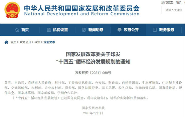 近日,國(guó)家發(fā)展改革委印發(fā)了《“十四五”循環(huán)經(jīng)濟(jì)發(fā)展規(guī)劃》(以下簡(jiǎn)稱(chēng)《規(guī)劃》),著重部署了今后一段時(shí)期我國(guó)循環(huán)經(jīng)濟(jì)發(fā)展的總體思路、主要任務(wù)和工程行動(dòng)以及保障措施,指明了“十四五”循環(huán)經(jīng)濟(jì)發(fā)展路徑,這一重要戰(zhàn)略的出臺(tái),迅速引起了社會(huì)和媒體的高度關(guān)注。